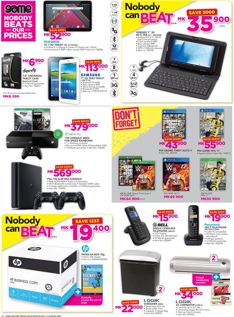 Game Malawi : Nobody Beats our Prices (26 July - 9 August 2017)