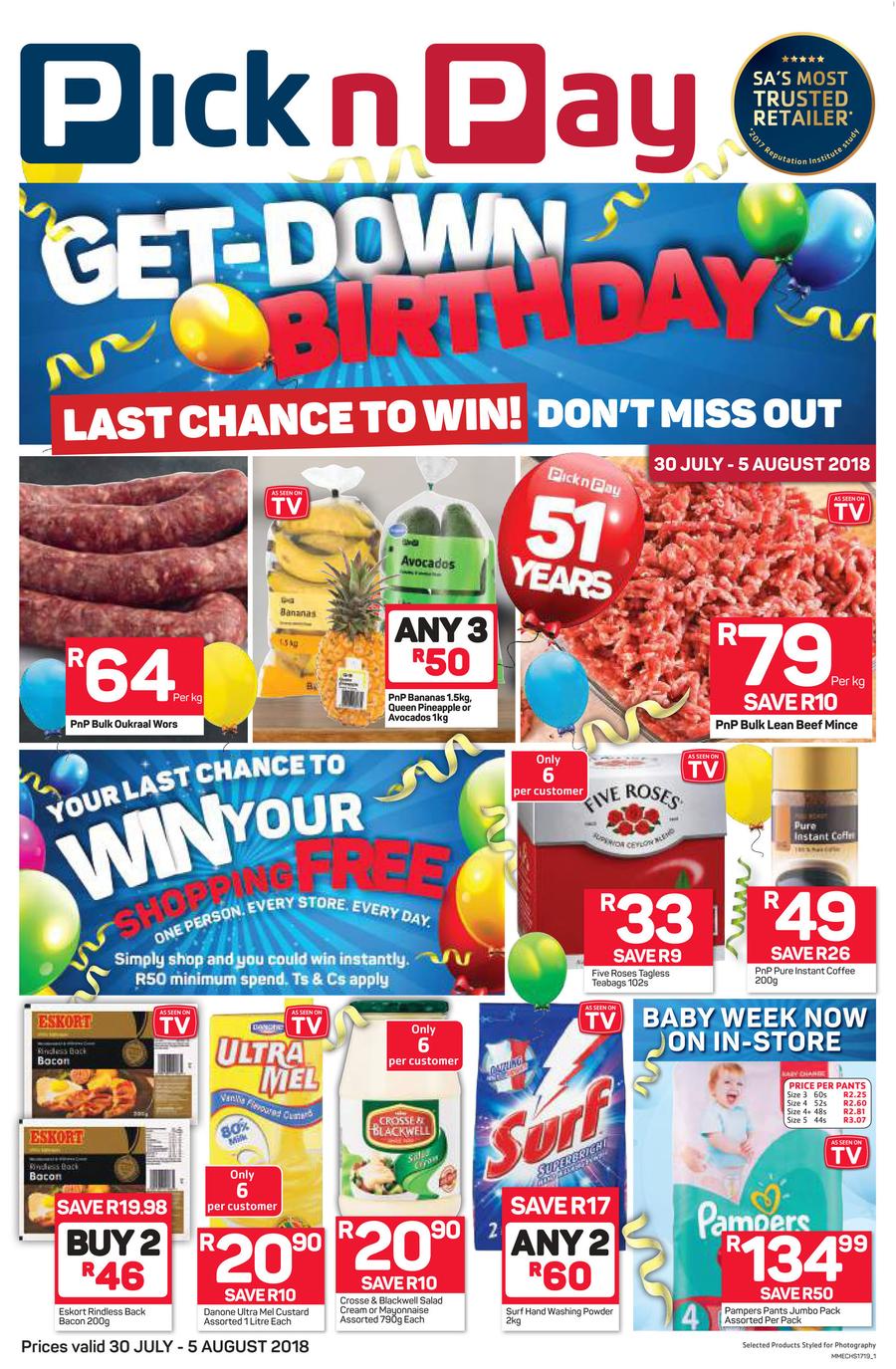 Pick n Pay Eastern Cape : Birthday Deals (30 Jul - 05 Aug 2018)
