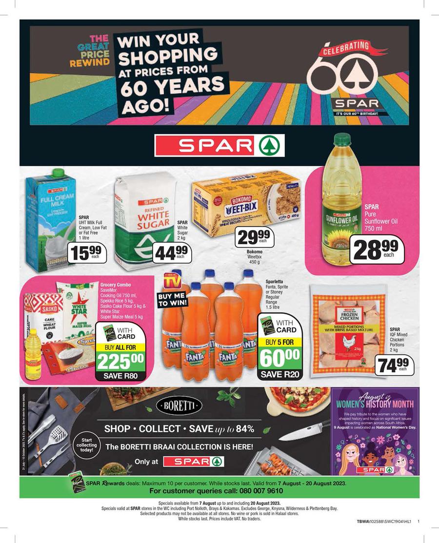 Spar Western Cape, Bellville, Cape Quarter, Fish Hoek, Hout Bay, Plattekloof, Sea Point, Old Oak, Woodstock Quarter : Celebrating 60 Years (7 August - 20 August 2023)