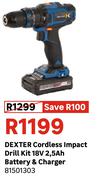 Dexter Cordless Impact Drill Kit 18V 2.5Ah Battery & Charger 81501303
