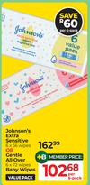 Johnson's Baby Wipes Extra Sensitive Or Gentle All Over (6 Pack)-Each