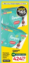 Pampers Ultra Skin Nappies Or Pants Jumbo Pack Or Premium Care Nappies Or Pants-Each