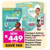 Pampers Active Baby Nappies Or Pants Or Premium Care Nappies Mega Box Assorted Sizes-Per Box