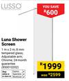 Lusso Luna Shower Screen 1m x 2m 850010202