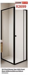 Siri Pivot Shower Door With Panel Black W90cm x D90cm x H180cm 81504655