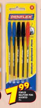 Penflex Ballpoint Pens Assorted-5's