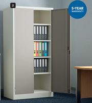 Colour: Ivory Karoo, Material: Mild Steel, Thickness: 0.6-1.2mm, Product Fully Assembled, 5 Year Warranty. Includes 4 Adjustable Shelves. Product Excludes Accessories: Printer, Stationery, Desk & Accessories Shown For Display Purposes Only.
