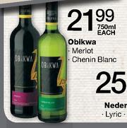 Obikwa-Merlot/Chenin Blanc-750ml Each