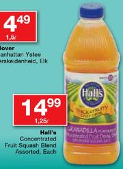 Hall's Concentrated Fruit Squash Blend Assorted-1.25L Each