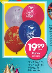 Disney Balloons/It's A Boy-6's/It's A Girl-6's/Mickey-5's/Princess-6's -Per Pack