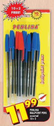 Penlina Ballpoint Pens Assorted-10+2