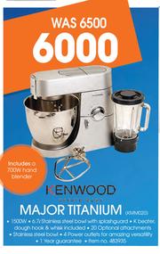 1500W, 6.7ltr Stainless Steel Bowl With Splashguard, K Beater, Dough Hock & Whisk Included, 20 Optional Attachments, Stainless Steel Bowl, 4 Power Outlets For Amazing Vesatilty, 1 Year Guarantee, Item No.483935. Includes A 700W Hand Blender.