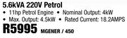 Macafric 5.6kVA 220V Petrol Portable Generator MGENER/450