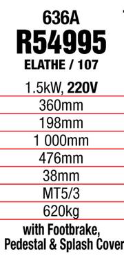 Powerful Motor: 1.5Kw, 220V Swing Over Bed: 360mm Swing Over Cross Slide: 198mm Distance Between Centres; 1000mm Swing In Gap: 476mm Spindle Bore: 38mm Spindle Taper/Tail Stock: MT5/3 Gross Weight: 620Kg, With Footbrake Pedestal & Splash Cover.