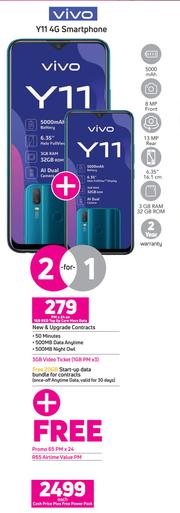 2 x Vivo Y11 4G Smartphone-On 1GB Red Top Up Core More Data + On Promo 65