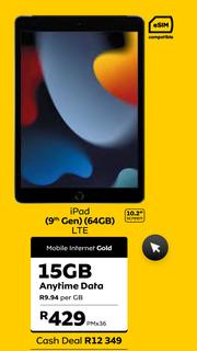 Apple iPad 9th Gen 64GB LTE (10.2" Screen)-Mobile Internet Gold