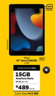 Apple iPad 9th Gen 256GB LTE (10.2" Screen)-Mobile Internet Gold