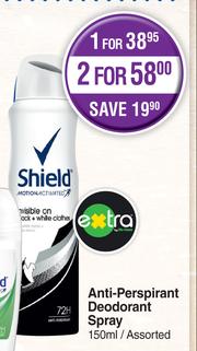 Shield Anti Perspirant Deodorant Spray Assorted-For 2 x 150ml