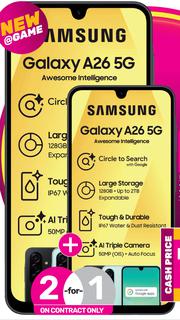 2 x Samsung Galaxy A26 Smartphone Plus Samsung Fit 3-On Red Flexi 160 + Promo 1GB Data