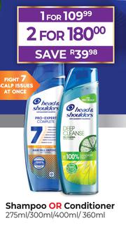 Head & Shoulders Shampoo Or Conditioner 275ml/300ml/400ml/360ml-For 2